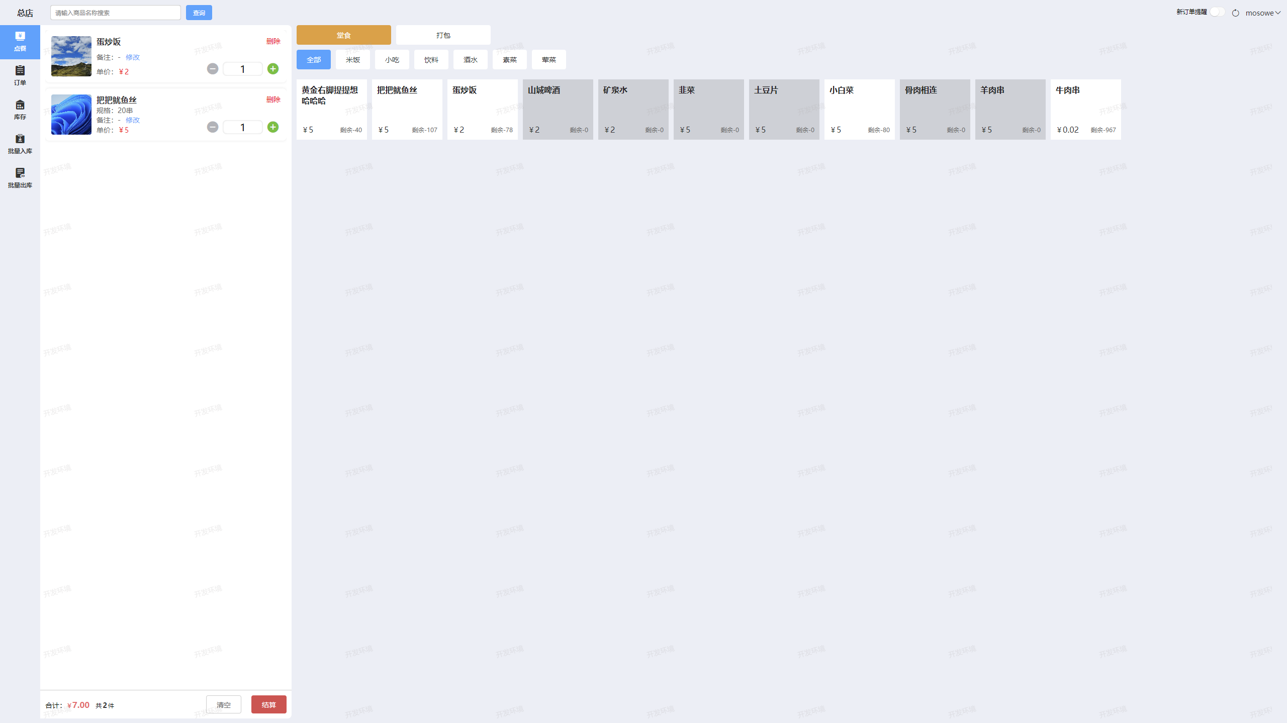 就这样,一个基础的简易版管理系统+收银台就这么出来了,这个时候的收银台还很丑,虽然借鉴了一些网上图片,但是还是很丑。